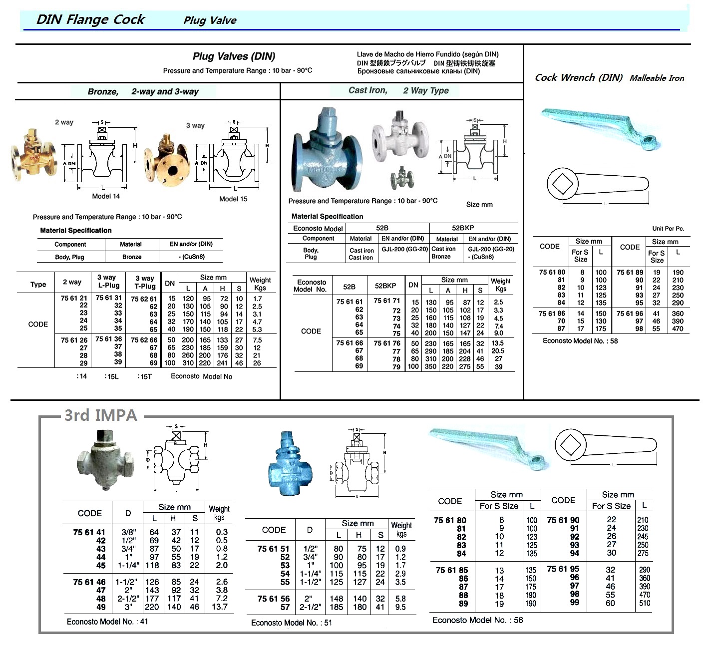 DIN GLAND COCK (PLUG VALVE) BRONZE, DIN FLANGED, 2 WAY TYPE, DN 25