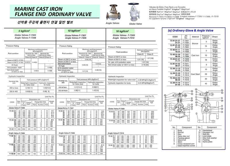 MARINE CAST IRON ANGLE VALVE, FLANGE END, JIS F7306, 5KGF/CM2, 65 MM
