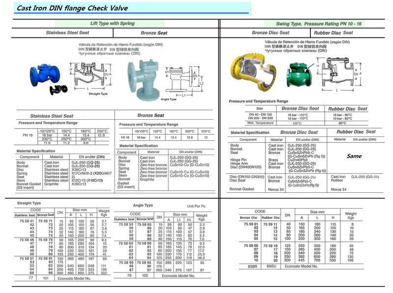 CHECK VALVE (DIN), CAST IRON, FLANGED, BRONZE SEAT, LIFT TY, STRAIGHT, SIZE DN 15